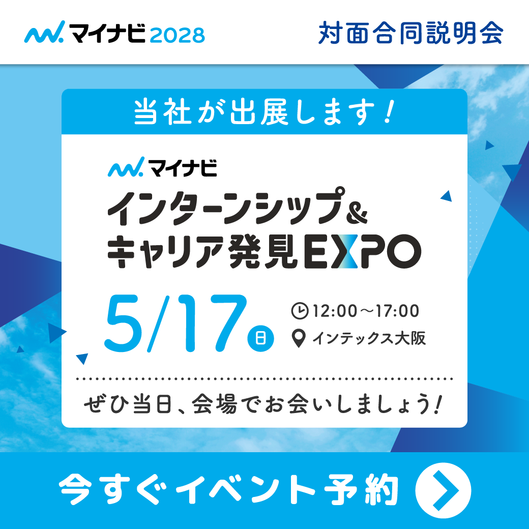 【2028年新卒採用】マイナビ主催「 インターンシップ&キャリア発見EXPO」に出展します(5/17・大阪)